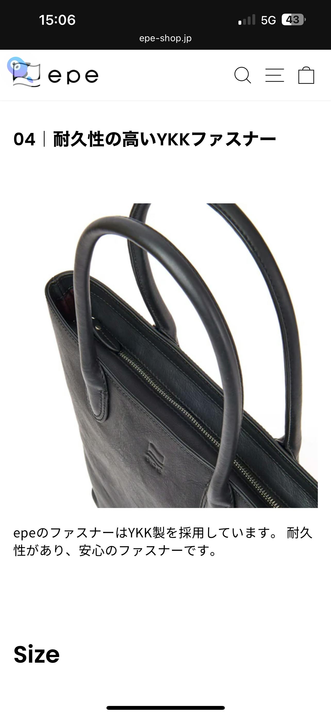 epeのファスナーはYKK製を採用しています。 耐久性があり、安心のファスナーです。