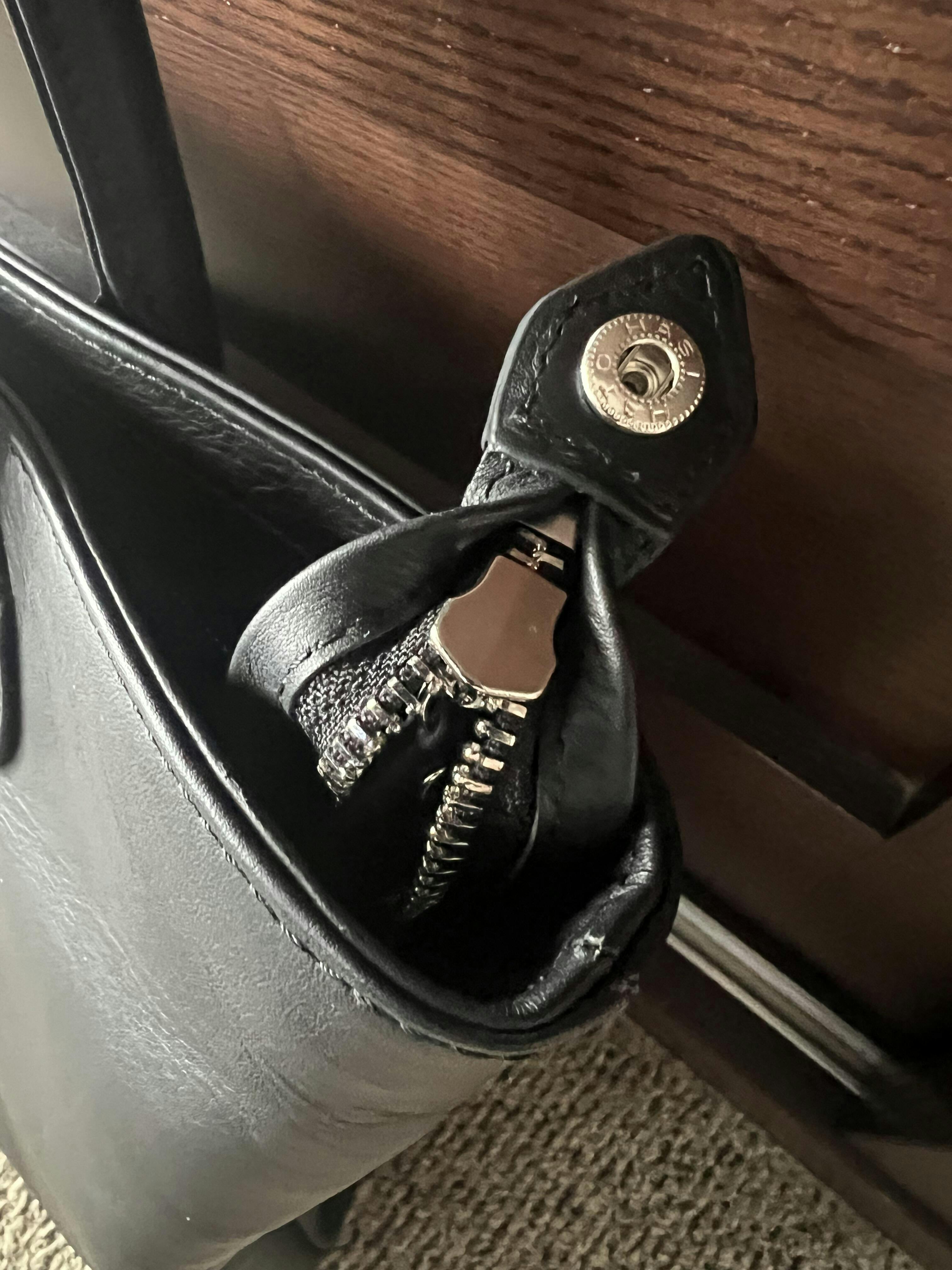 反対側にはファスナーポケットを装備。 ハンカチやマスクなど、仕分けしたい荷物の収納に便利です。
