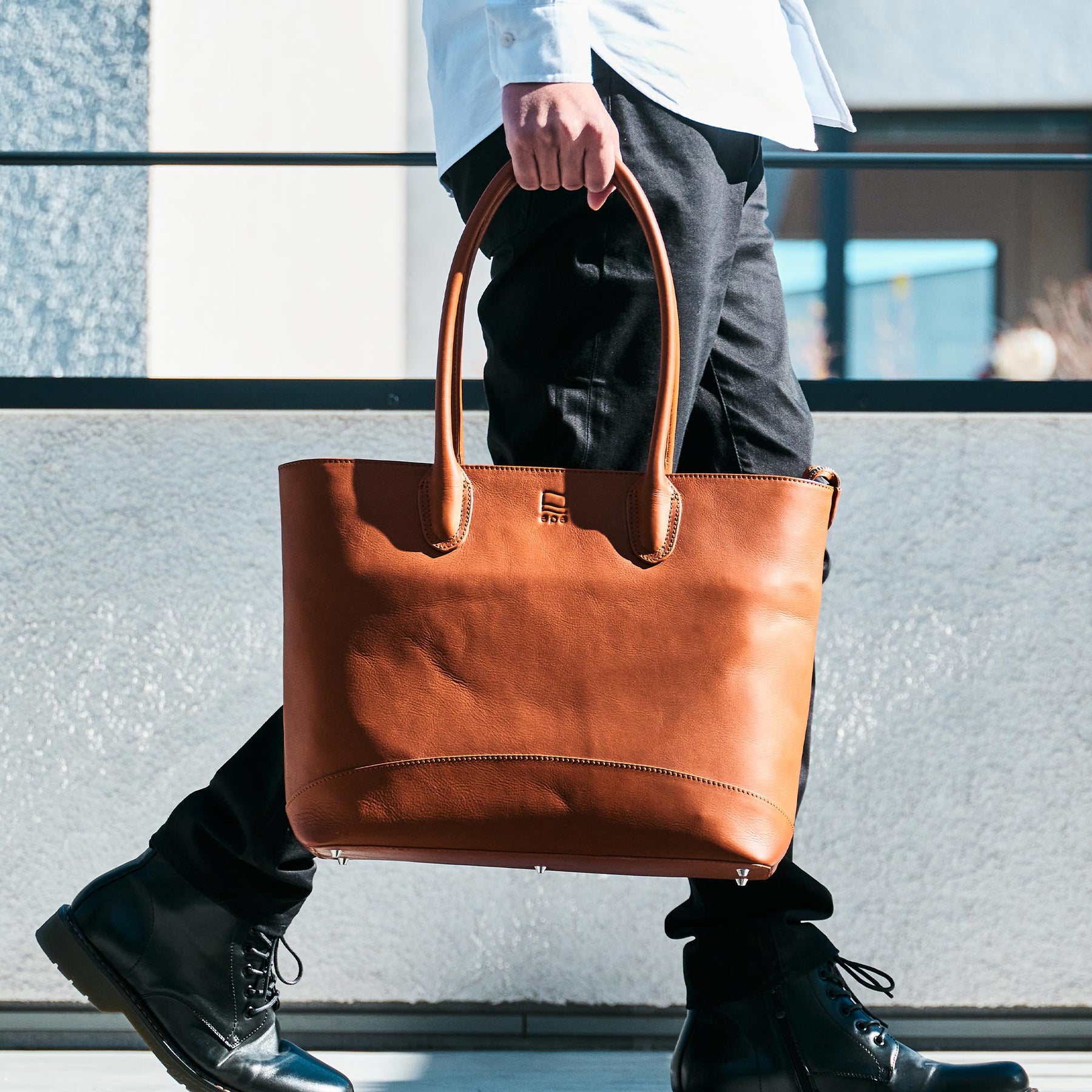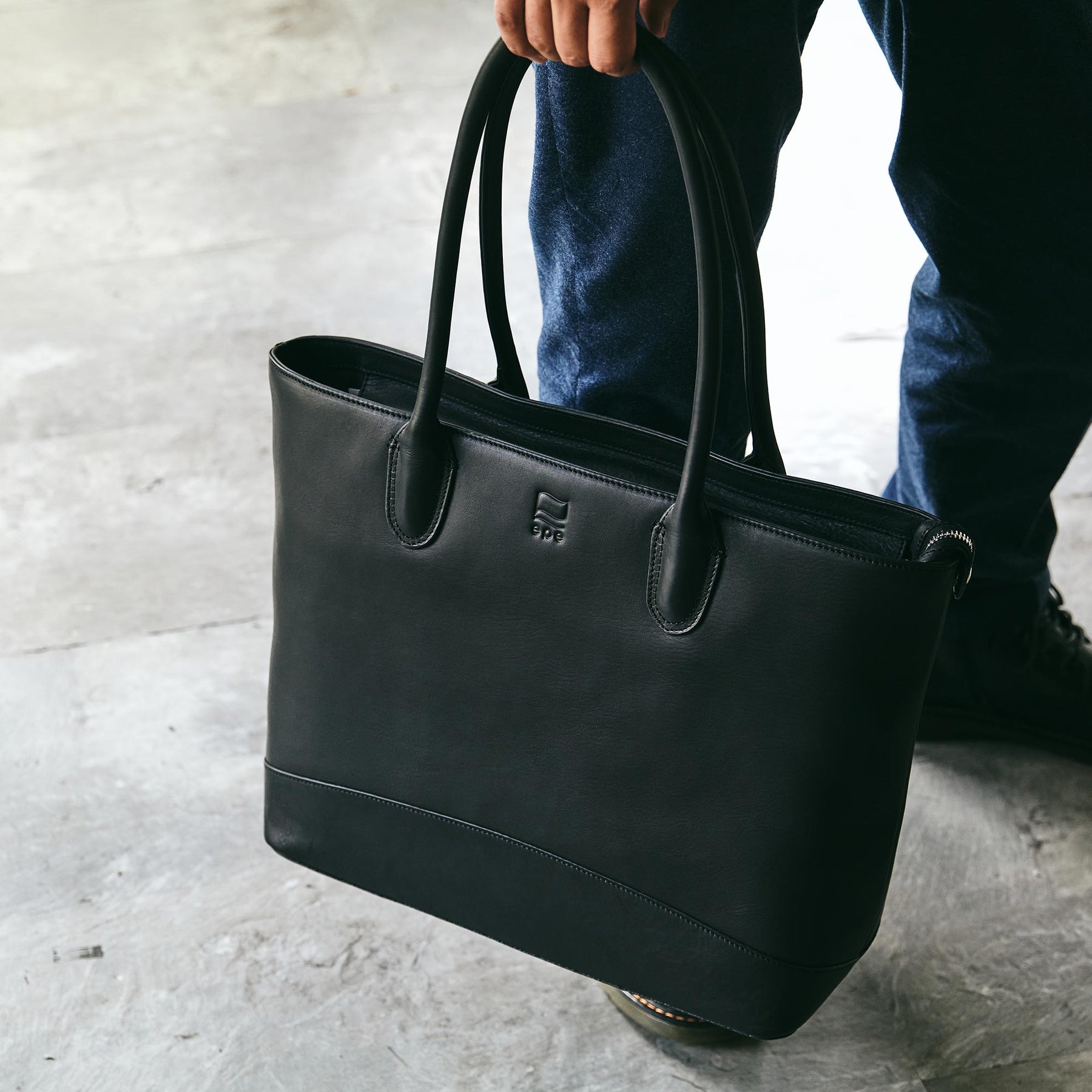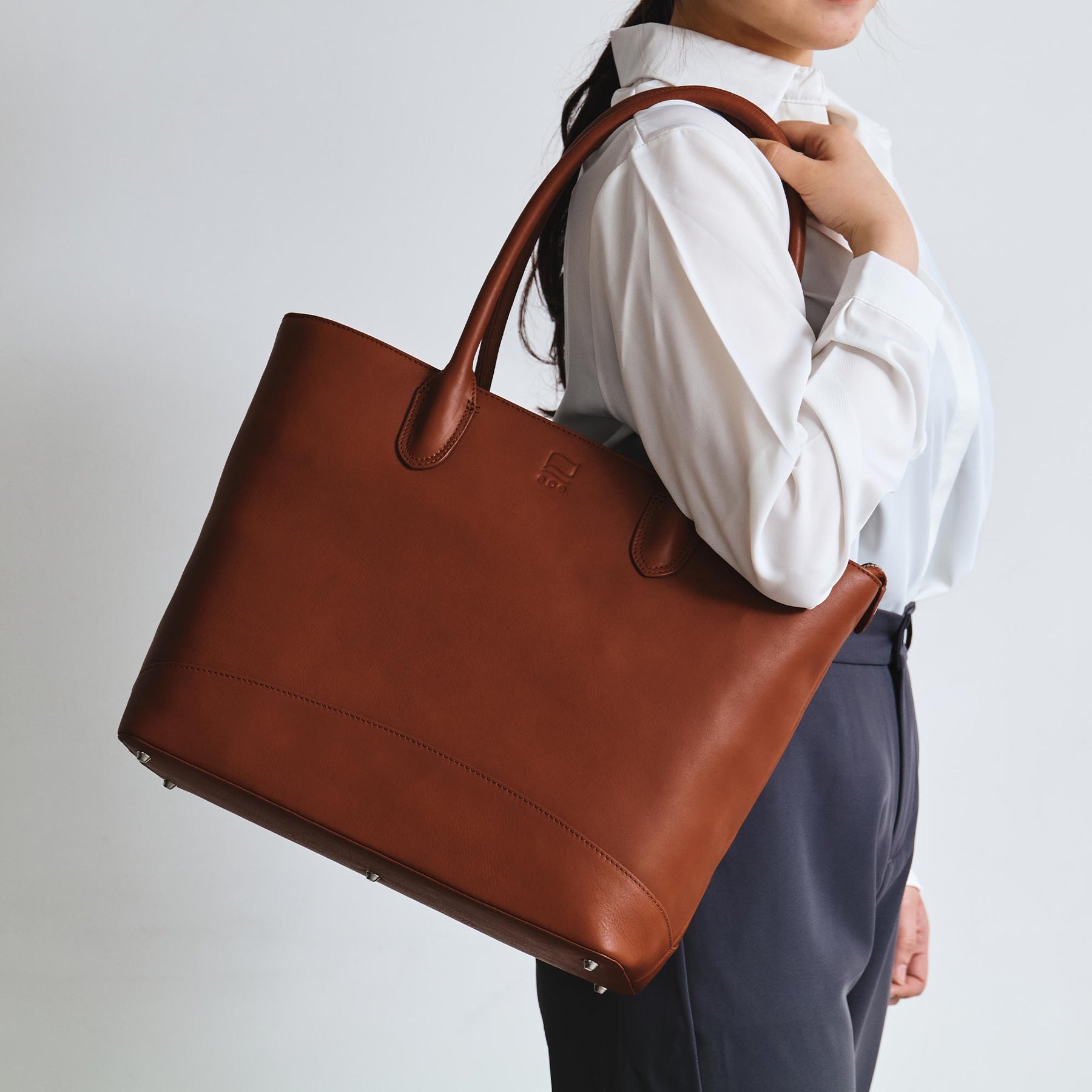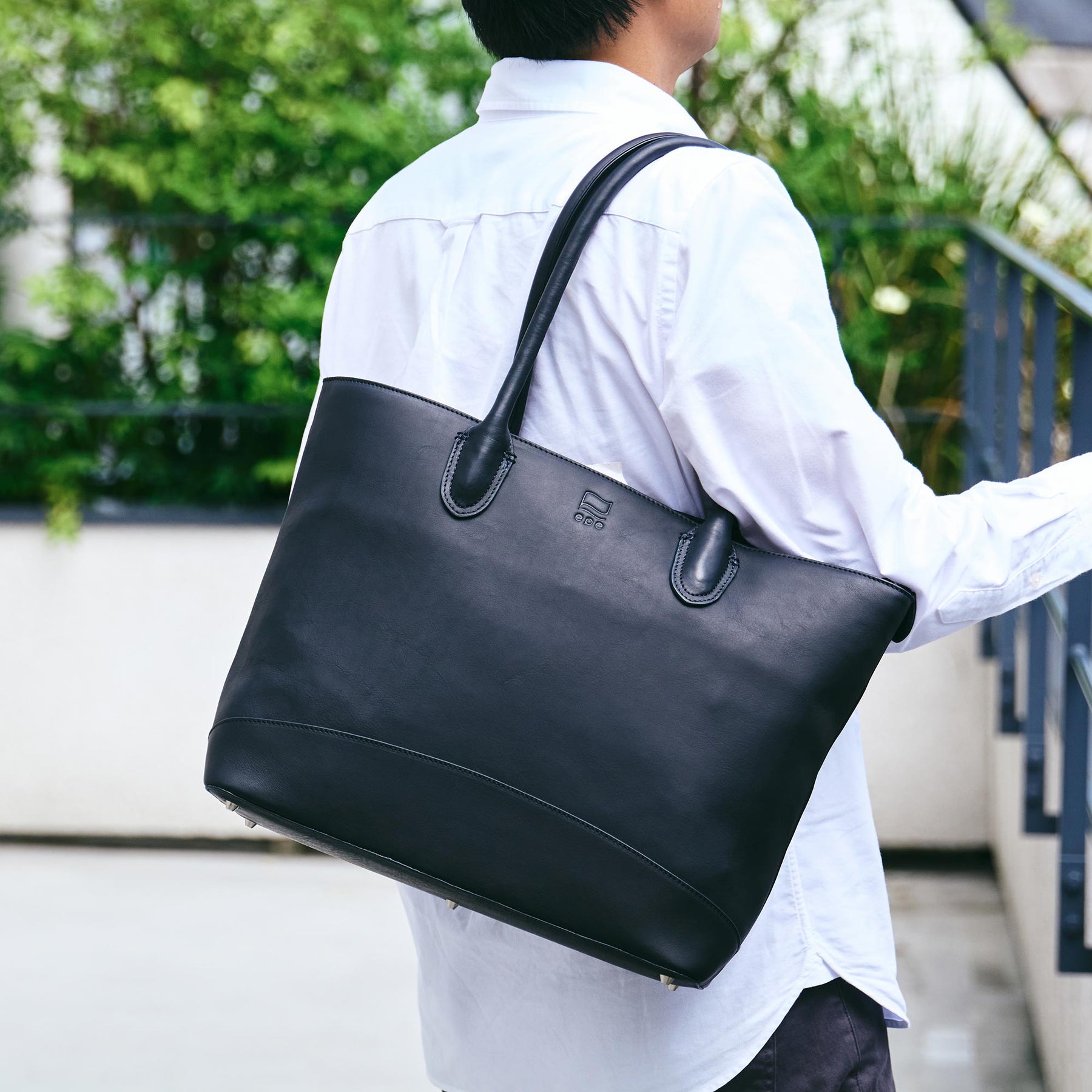 服装を選ばないシンプルなトートバッグは、ビジネスシーンから日常使いまで幅広いシーンに対応できます。